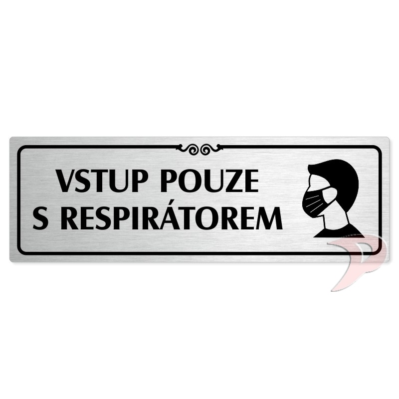 Vstup pouze s respirátorem, 200x66mm, stříbrná popiska s ozdobou uprostřed