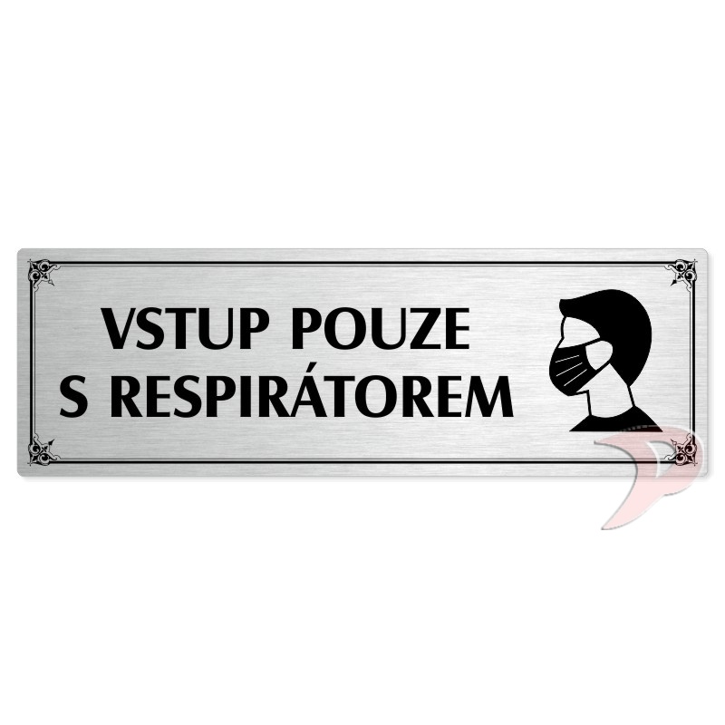Vstup pouze s respirátorem, 240x79mm, stříbrná popiska s okrasným rámečkem