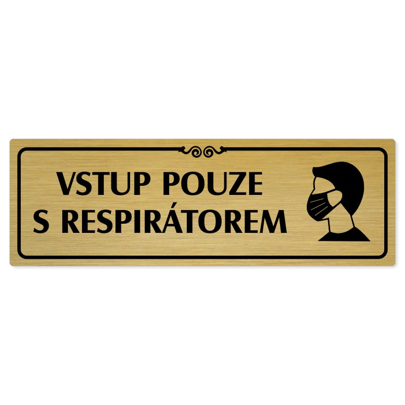 Vstup pouze s respirátorem, 240x79mm, zlatá popiska s ozdobou uprostřed