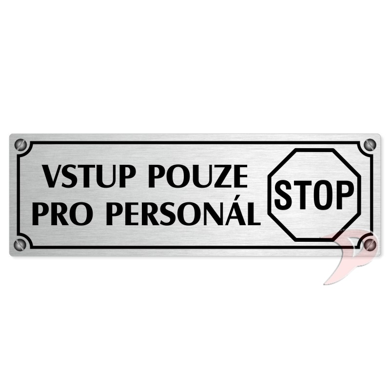 Vstup pro personál, 200x66mm, stříbrná popiska s imitacemi šroubků