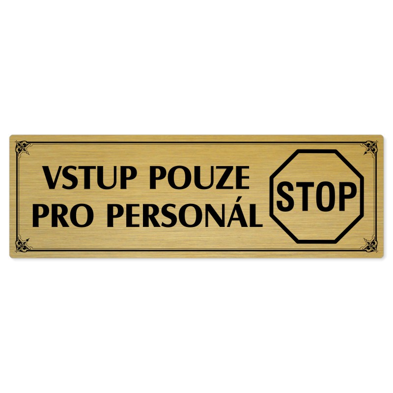 Vstup pro personál, 200x66mm, zlatá popiska s okrasným rámečkem238 Kč197 Kč bez DPH