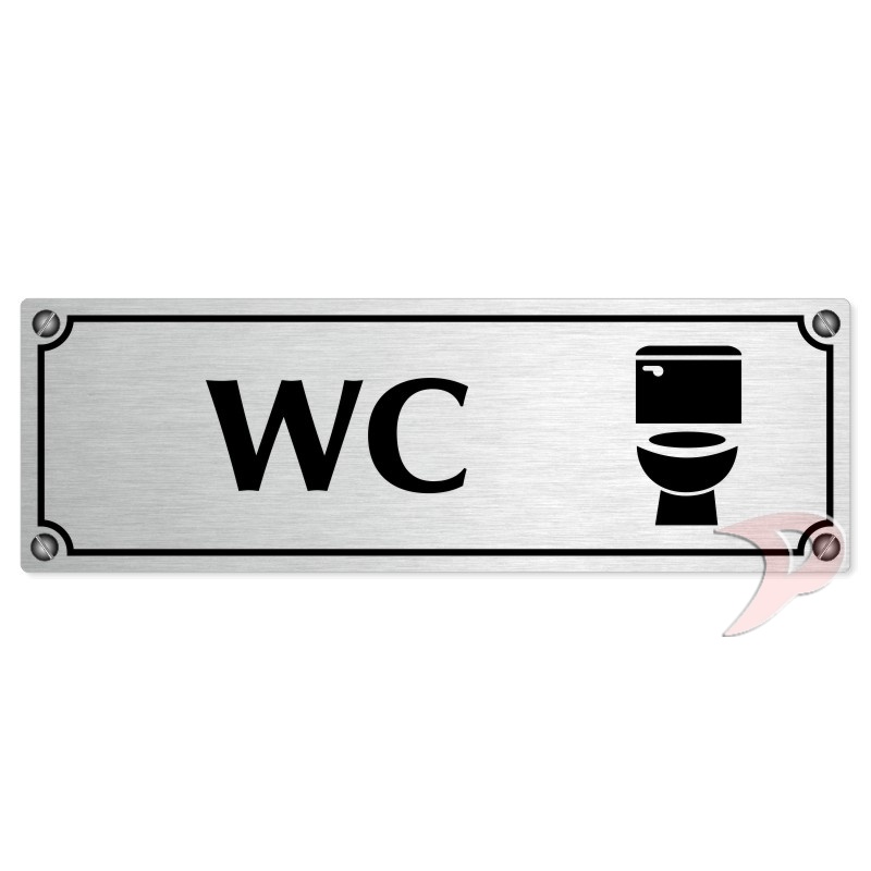WC, 200x66mm, stříbrná popiska s imitacemi šroubků