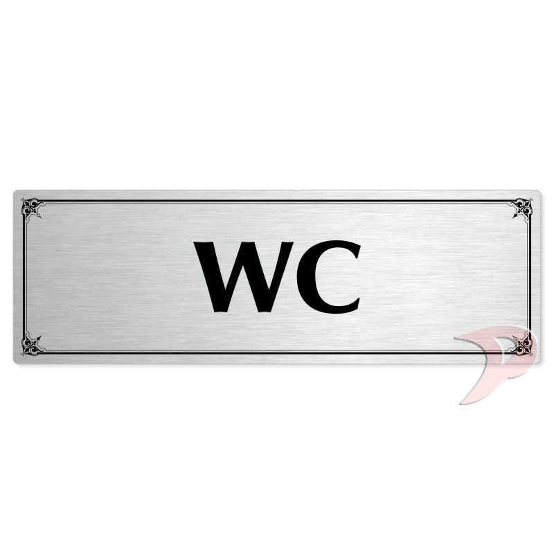 WC, 200x66mm, stříbrná popiska s okrasným rámečkem
