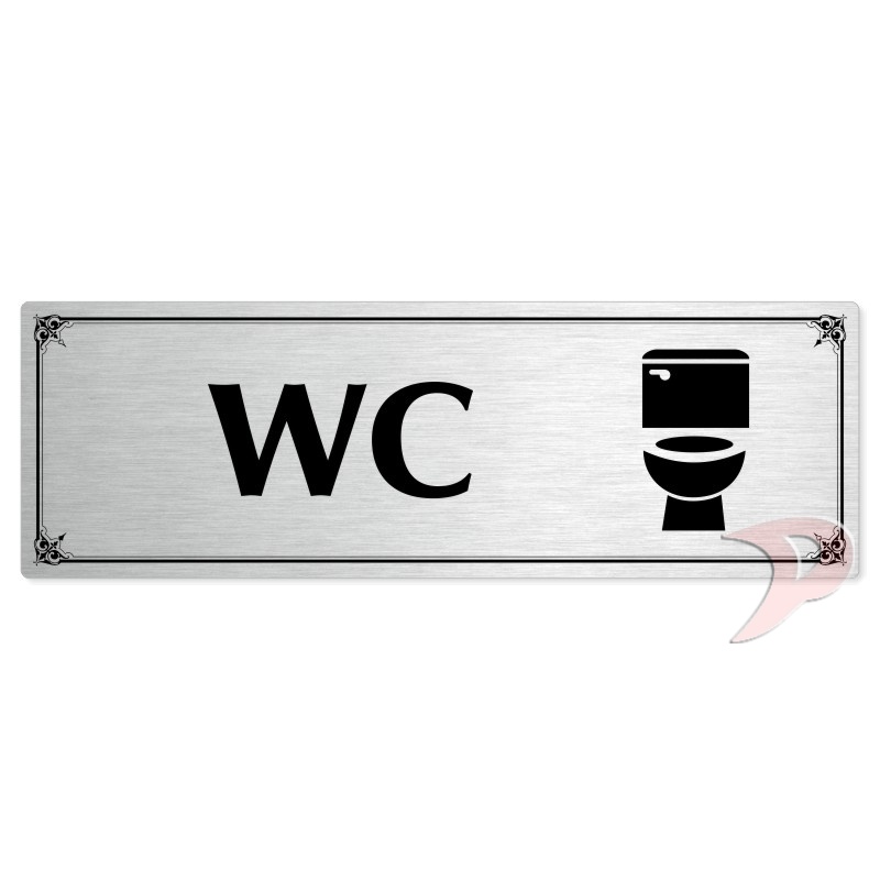 WC, 200x66mm, stříbrná popiska s okrasným rámečkem