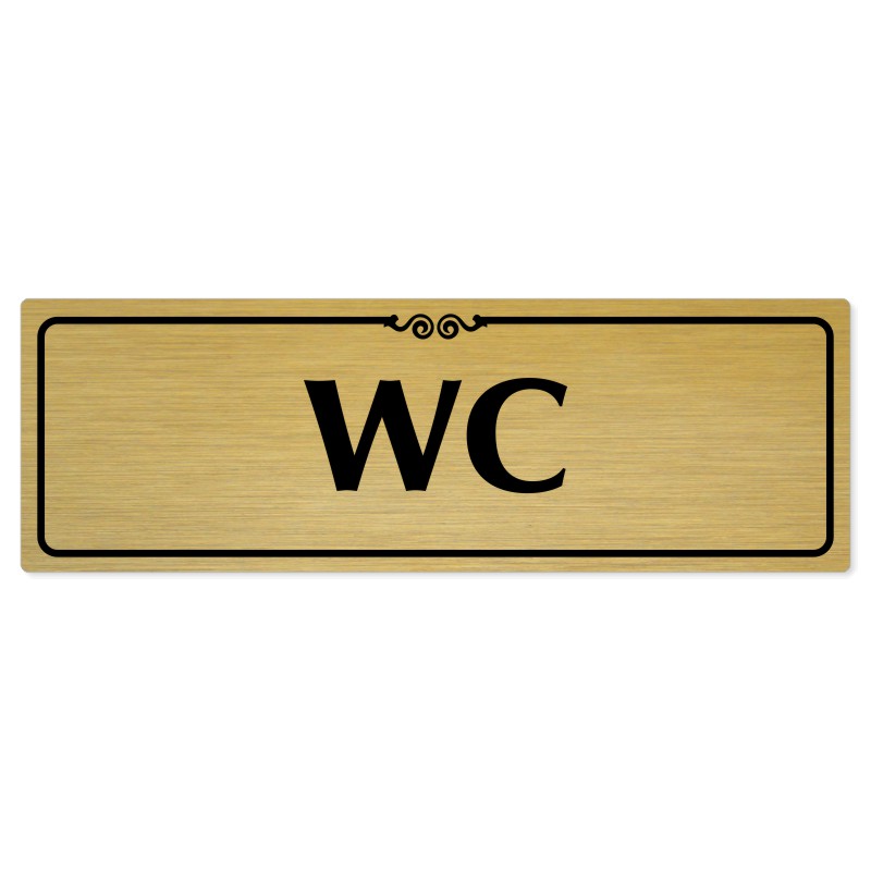 WC, 240x79mm, zlatá popiska s ozdobou uprostřed