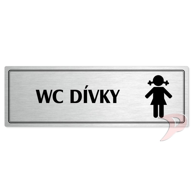 WC dívky, 240x79mm, stříbrná popiska s dvojtým rámečkem