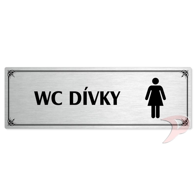 WC dívky, 240x79mm, stříbrná popiska s okrasným rámečkem