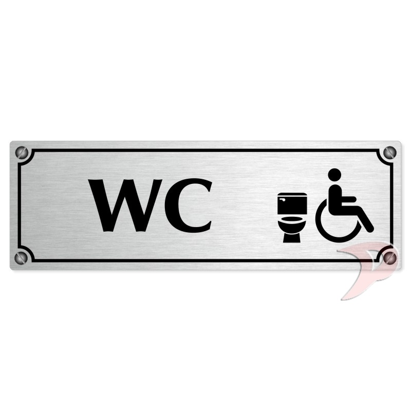 WC invalida, 200x66mm, stříbrná popiska s imitacemi šroubků