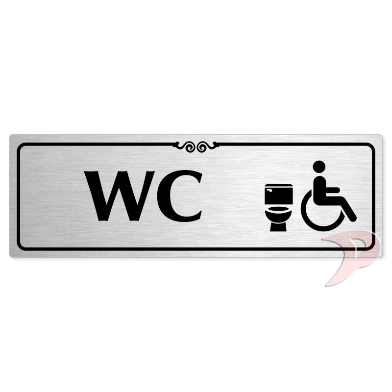 WC invalida, 200x66mm, stříbrná popiska s ozdobou uprostřed