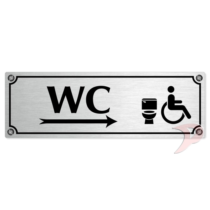 WC invalida vpravo, 200x66mm, stříbrná popiska s imitacemi šroubků