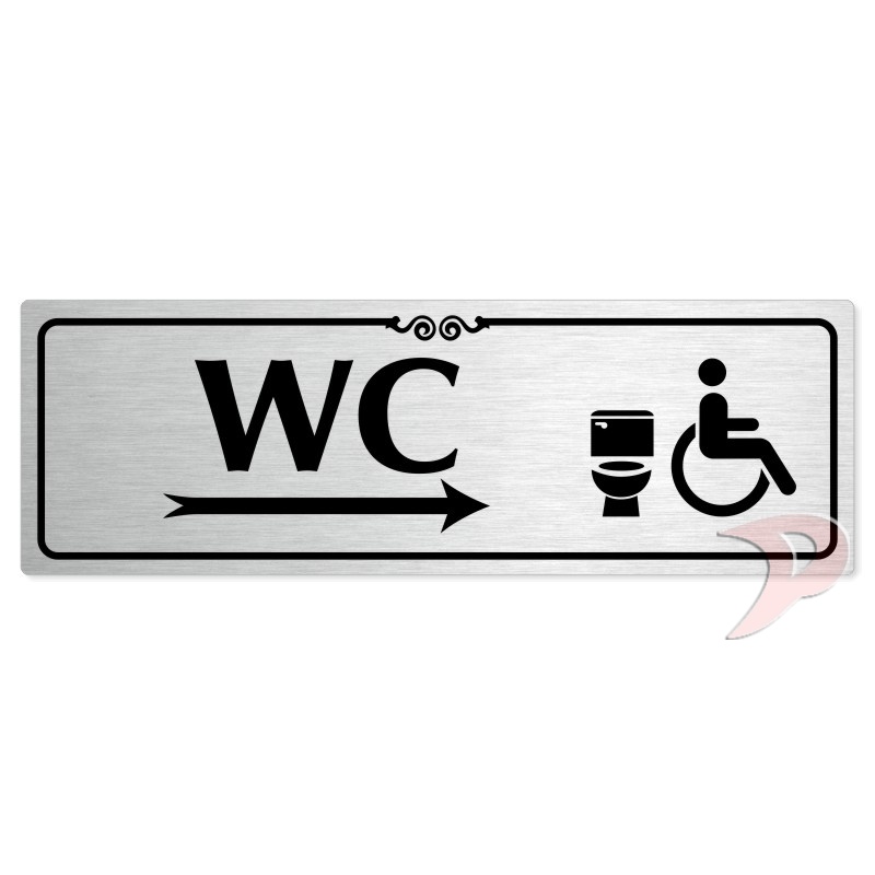 WC invalida vpravo, 240x79mm, stříbrná popiska s ozdobou uprostřed