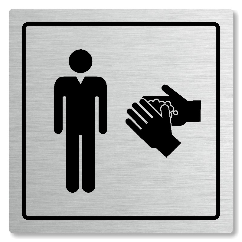 Cedulka na dveře “WC muži“ Vyrobeno z broušeného lakovaného hliníku o síle 0,6 mm Rozměr je 80x80mm, 100x100mm, 118x118mm a 148x148mm Povrch je pololesklý  Obrázek či text je tepelně-chemicky natištěn do materiálu, a nelze ho odstranit. Cedulka je z výroby podlepena oboustrannou  páskou pro sna... celý popis