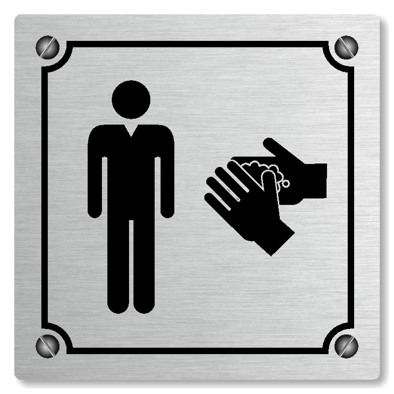 Cedulka na dveře “WC muži“ Vyrobeno z broušeného lakovaného hliníku o síle 0,6 mm Rozměr je 80x80mm, 100x100mm, 118x118mm a 148x148mm Povrch je pololesklý  Obrázek či text je tepelně-chemicky natištěn do materiálu, a nelze ho odstranit. Cedulka je z výroby podlepena oboustrannou  páskou pro sna... celý popis