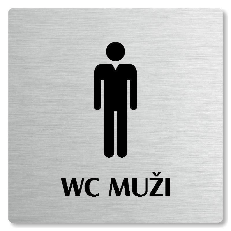 Cedulka na dveře “WC muži“ Vyrobeno z broušeného lakovaného hliníku o síle 0,6 mm Rozměr je 80x80mm, 100x100mm, 118x118mm a 148x148mm Povrch je pololesklý  Obrázek či text je tepelně-chemicky natištěn do materiálu, a nelze ho odstranit. Cedulka je z výroby podlepena oboustrannou  páskou pro sna... celý popis