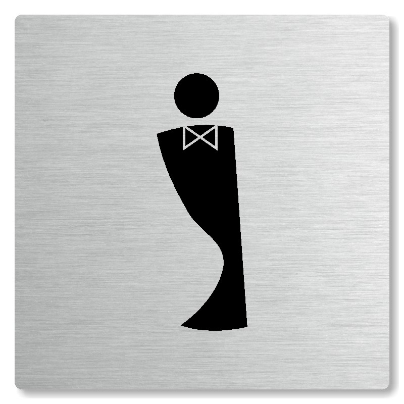 Cedulka na dveře “WC muži“ Vyrobeno z broušeného lakovaného hliníku o síle 0,6 mm Rozměr je 80x80mm, 100x100mm, 118x118mm a 148x148mm Povrch je pololesklý  Obrázek či text je tepelně-chemicky natištěn do materiálu, a nelze ho odstranit. Cedulka je z výroby podlepena oboustrannou  páskou pro sna... celý popis