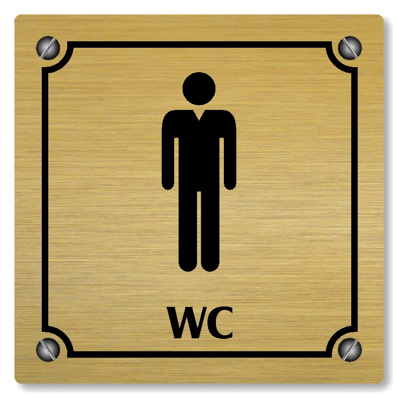 Cedulka na dveře “WC muži“ Vyrobeno z broušeného lakovaného hliníku o síle 0,6 mm Rozměr je 80x80mm, 100x100mm, 118x118mm a 148x148mm Povrch je pololesklý  Obrázek či text je tepelně-chemicky natištěn do materiálu, a nelze ho odstranit. Cedulka je z výroby podlepena oboustrannou  páskou pro sna... celý popis