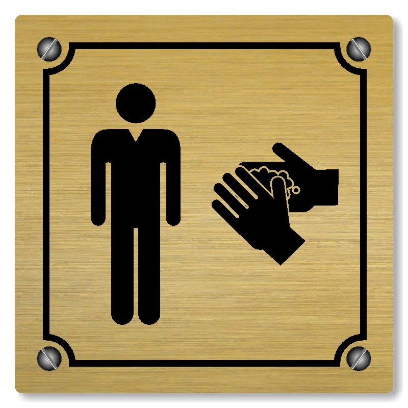 Cedulka na dveře “WC muži“ Vyrobeno z broušeného lakovaného hliníku o síle 0,6 mm Rozměr je 80x80mm, 100x100mm, 118x118mm a 148x148mm Povrch je pololesklý  Obrázek či text je tepelně-chemicky natištěn do materiálu, a nelze ho odstranit. Cedulka je z výroby podlepena oboustrannou  páskou pro sna... celý popis