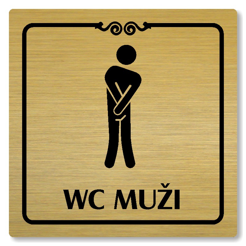Cedulka na dveře “WC muži“ Vyrobeno z broušeného lakovaného hliníku o síle 0,6 mm Rozměr je 80x80mm, 100x100mm, 118x118mm a 148x148mm Povrch je pololesklý  Obrázek či text je tepelně-chemicky natištěn do materiálu, a nelze ho odstranit. Cedulka je z výroby podlepena oboustrannou  páskou pro sna... celý popis