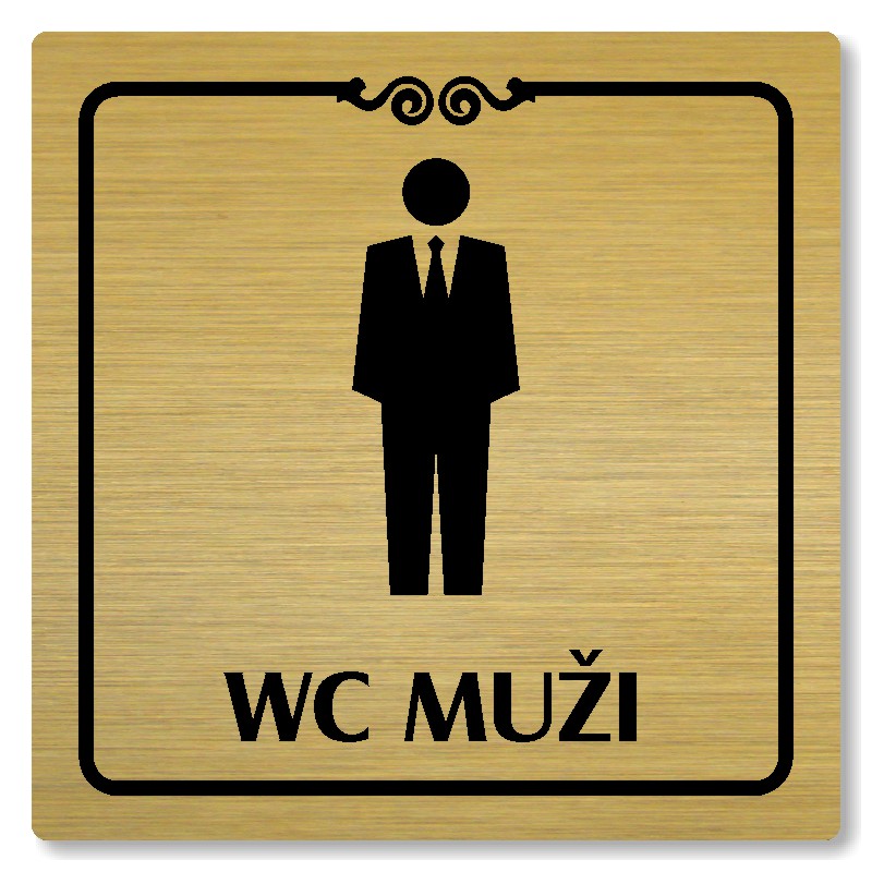 Cedulka na dveře “WC muži“ Vyrobeno z broušeného lakovaného hliníku o síle 0,6 mm Rozměr je 80x80mm, 100x100mm, 118x118mm a 148x148mm Povrch je pololesklý  Obrázek či text je tepelně-chemicky natištěn do materiálu, a nelze ho odstranit. Cedulka je z výroby podlepena oboustrannou  páskou pro sna... celý popis