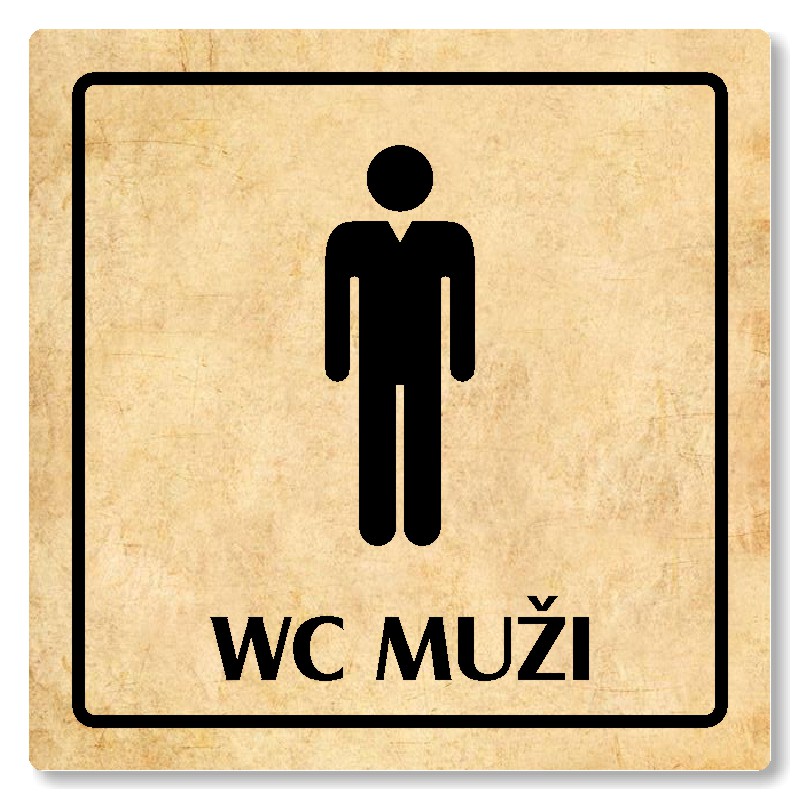 Cedulka na dveře “WC muži“ Vyrobeno z broušeného lakovaného hliníku o síle 0,6 mm Rozměr je 80x80mm, 100x100mm, 118x118mm a 148x148mm Povrch je pololesklý  Obrázek či text je tepelně-chemicky natištěn do materiálu, a nelze ho odstranit. Cedulka je z výroby podlepena oboustrannou  páskou pro sna... celý popis