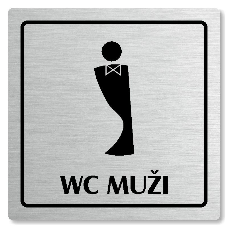 Cedulka na dveře “WC muži“ Vyrobeno z broušeného lakovaného hliníku o síle 0,6 mm Rozměr je 80x80mm, 100x100mm, 118x118mm a 148x148mm Povrch je pololesklý  Obrázek či text je tepelně-chemicky natištěn do materiálu, a nelze ho odstranit. Cedulka je z výroby podlepena oboustrannou  páskou pro sna... celý popis