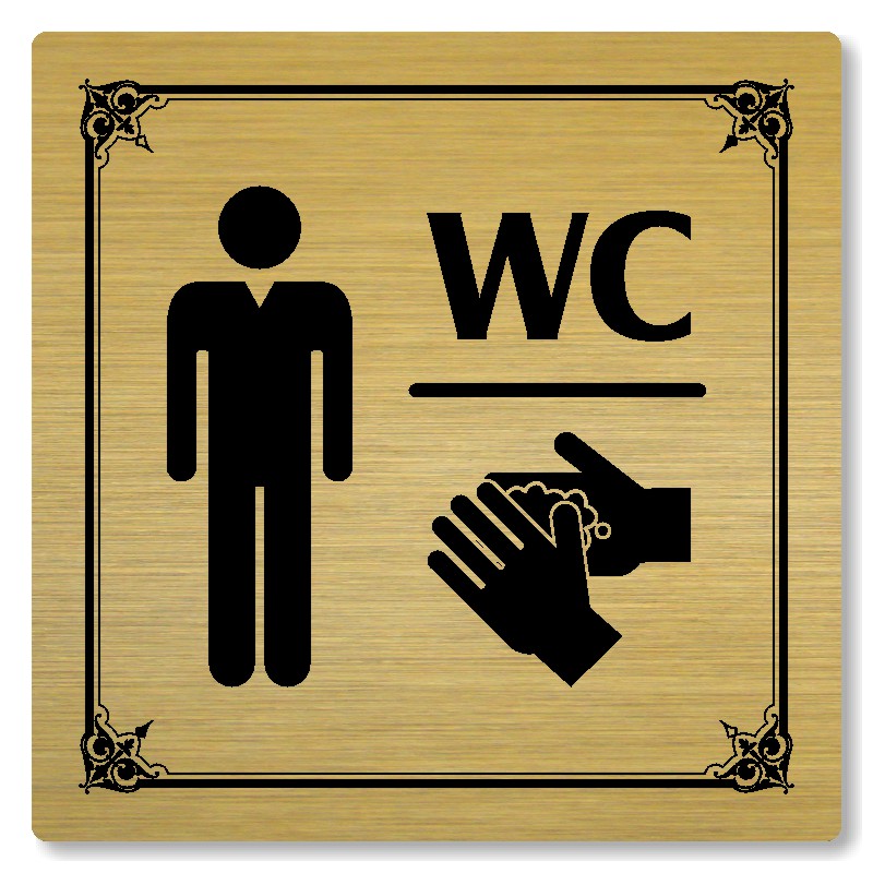 Cedulka na dveře “WC muži“ Vyrobeno z broušeného lakovaného hliníku o síle 0,6 mm Rozměr je 80x80mm, 100x100mm, 118x118mm a 148x148mm Povrch je pololesklý  Obrázek či text je tepelně-chemicky natištěn do materiálu, a nelze ho odstranit. Cedulka je z výroby podlepena oboustrannou  páskou pro sna... celý popis