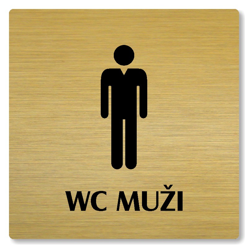 Cedulka na dveře “WC muži“ Vyrobeno z broušeného lakovaného hliníku o síle 0,6 mm Rozměr je 80x80mm, 100x100mm, 118x118mm a 148x148mm Povrch je pololesklý  Obrázek či text je tepelně-chemicky natištěn do materiálu, a nelze ho odstranit. Cedulka je z výroby podlepena oboustrannou  páskou pro sna... celý popis