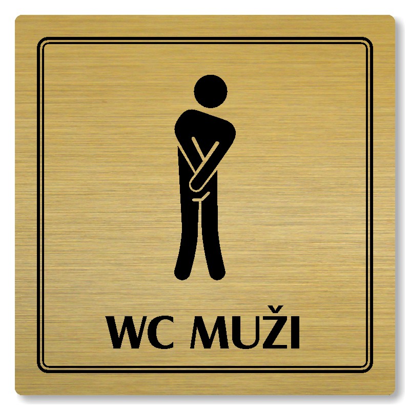 Cedulka na dveře “WC muži“ Vyrobeno z broušeného lakovaného hliníku o síle 0,6 mm Rozměr je 80x80mm, 100x100mm, 118x118mm a 148x148mm Povrch je pololesklý  Obrázek či text je tepelně-chemicky natištěn do materiálu, a nelze ho odstranit. Cedulka je z výroby podlepena oboustrannou  páskou pro sna... celý popis