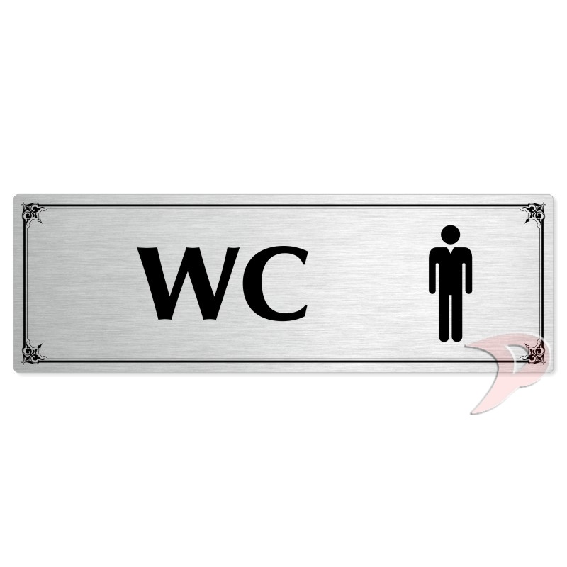 WC muži, 240x79mm, stříbrná popiska s okrasným rámečkem