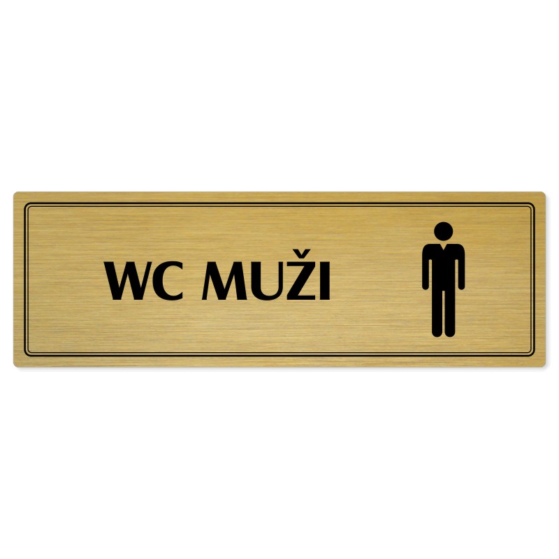 WC muži, 240x79mm, zlatá popiska s dvojtým rámečkem