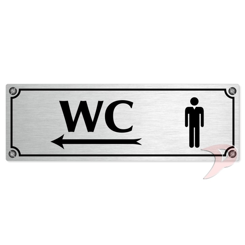 WC muži vlevo, 200x66mm, stříbrná popiska s imitacemi šroubků