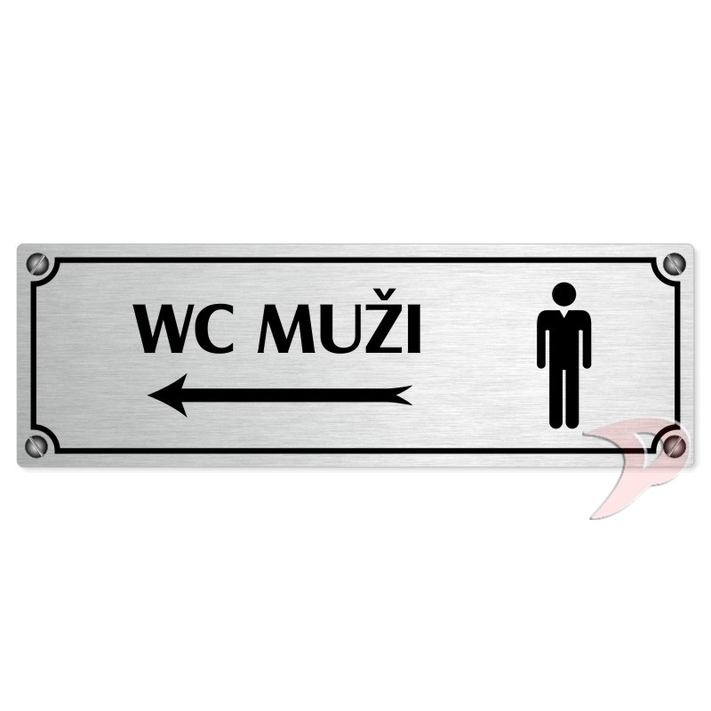 WC muži vlevo, 200x66mm, stříbrná popiska s imitacemi šroubků