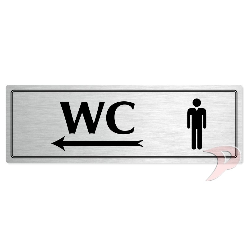 WC muži vlevo, 240x79mm, stříbrná popiska s dvojtým rámečkem
