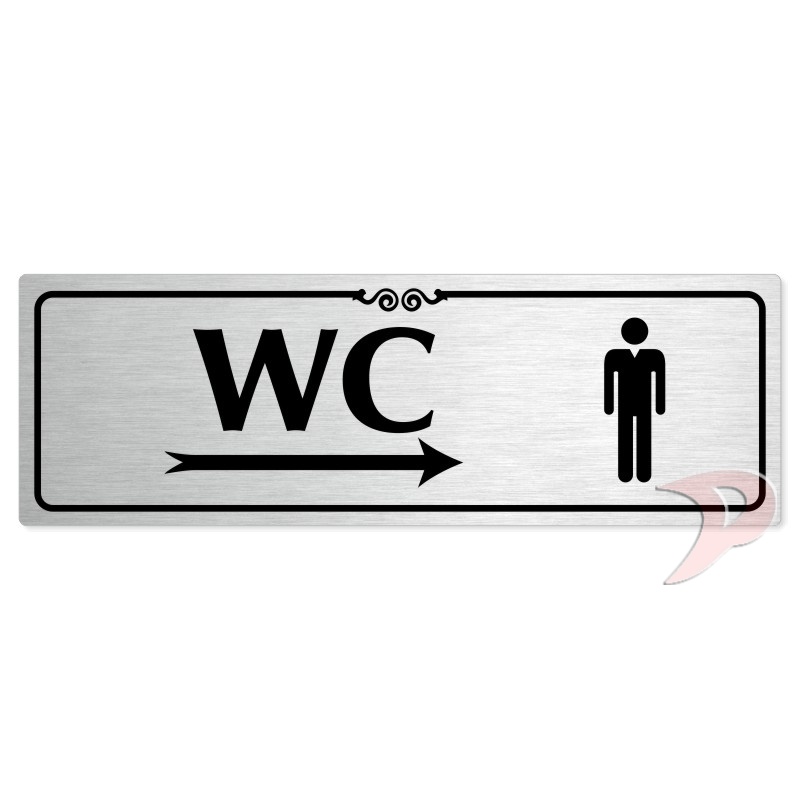 WC muži vpravo, 200x66mm, stříbrná popiska s ozdobou uprostřed