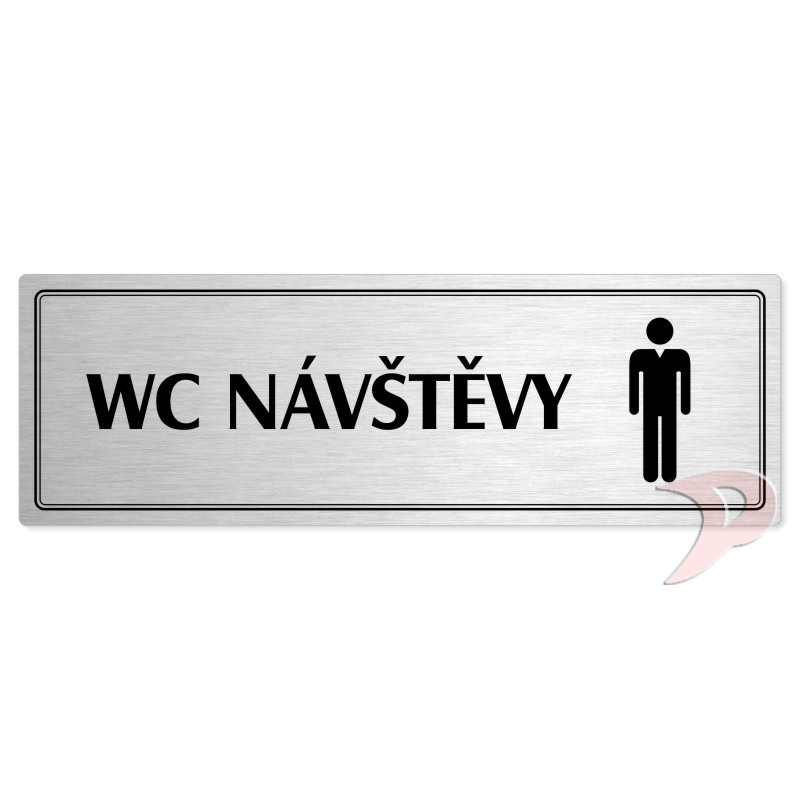 WC návštěvy muži, 200x66mm, stříbrná popiska s dvojtým rámečkem