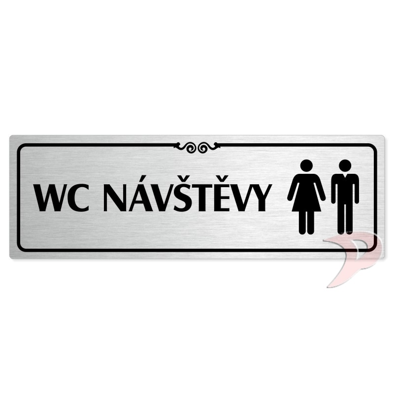 WC návštěvy společné, 200x66mm, stříbrná popiska s ozdobou uprostřed