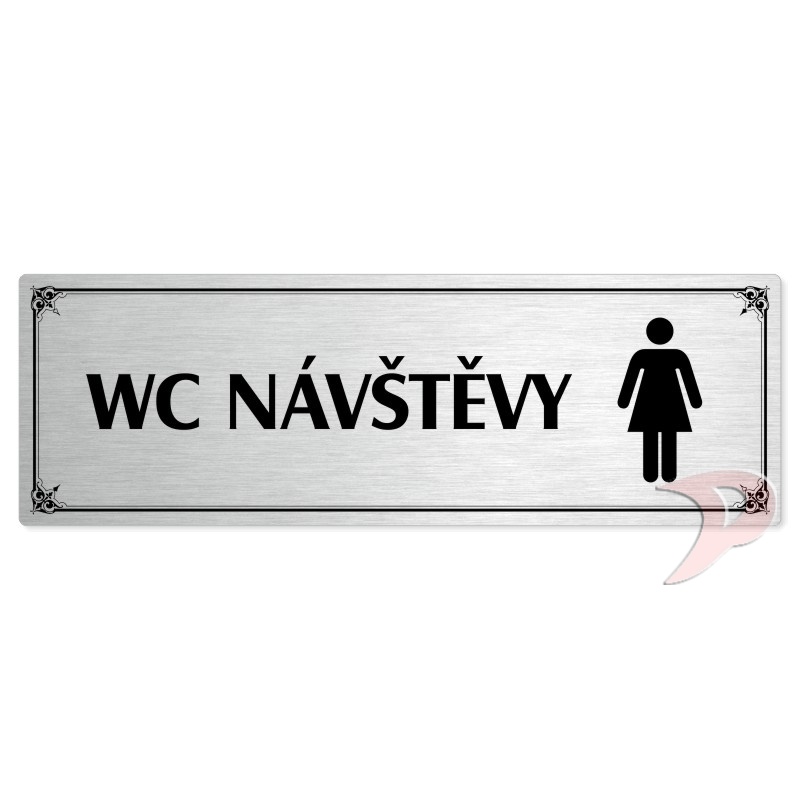 WC návštěvy ženy, 240x79mm, stříbrná popiska s okrasným rámečkem