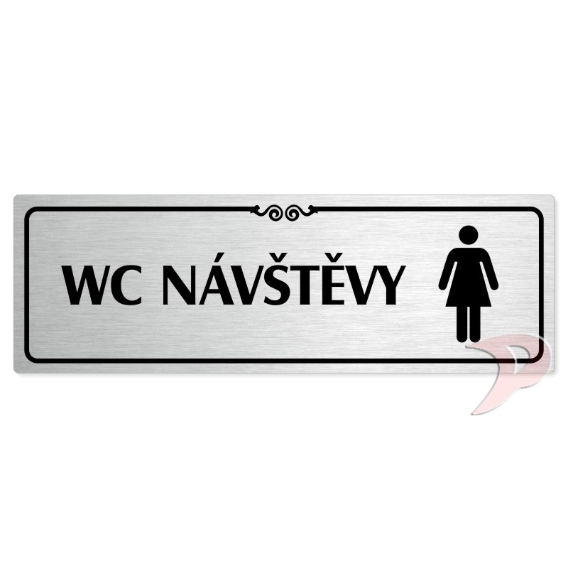 WC návštěvy ženy, 240x79mm, stříbrná popiska s ozdobou uprostřed