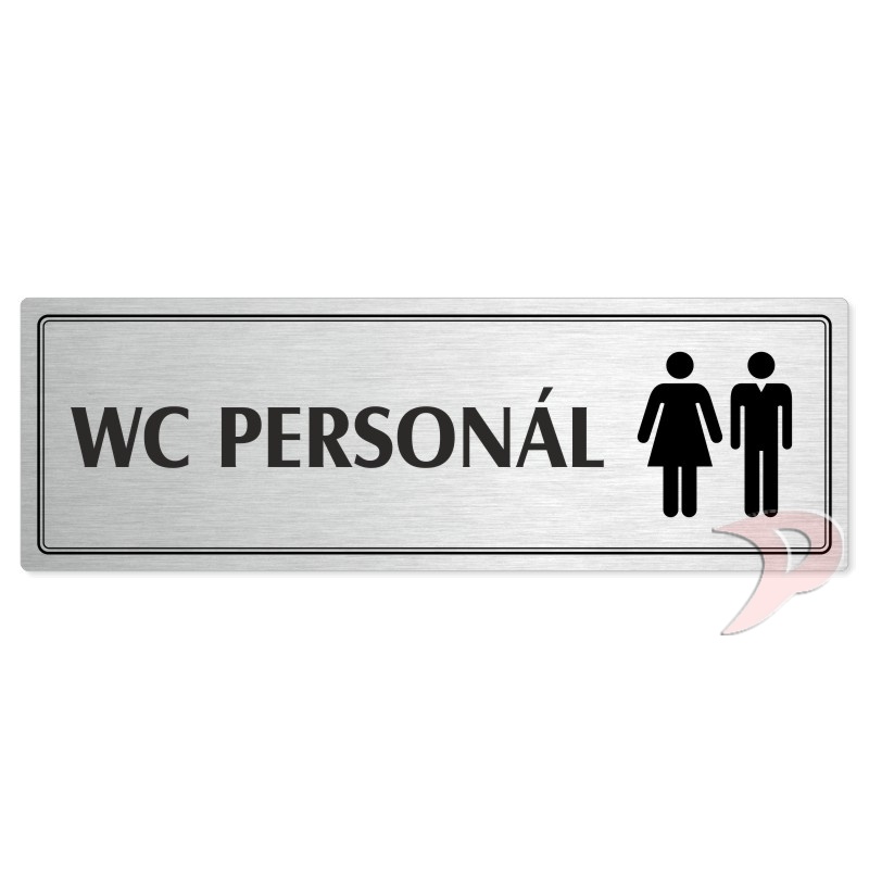 WC personál společné, 200x66mm, stříbrná popiska s dvojtým rámečkem