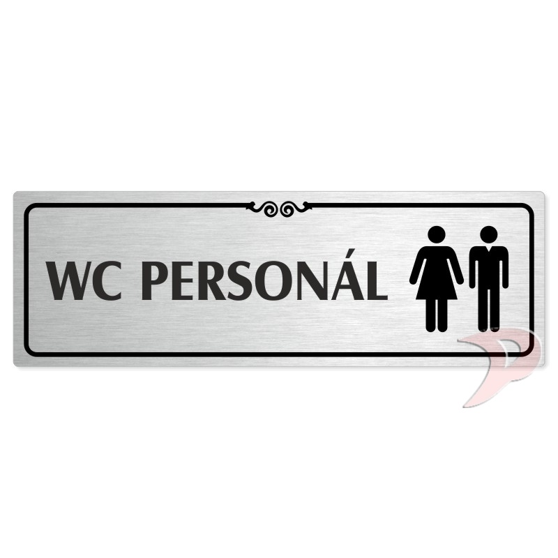 WC personál společné, 240x79mm, stříbrná popiska s ozdobou uprostřed