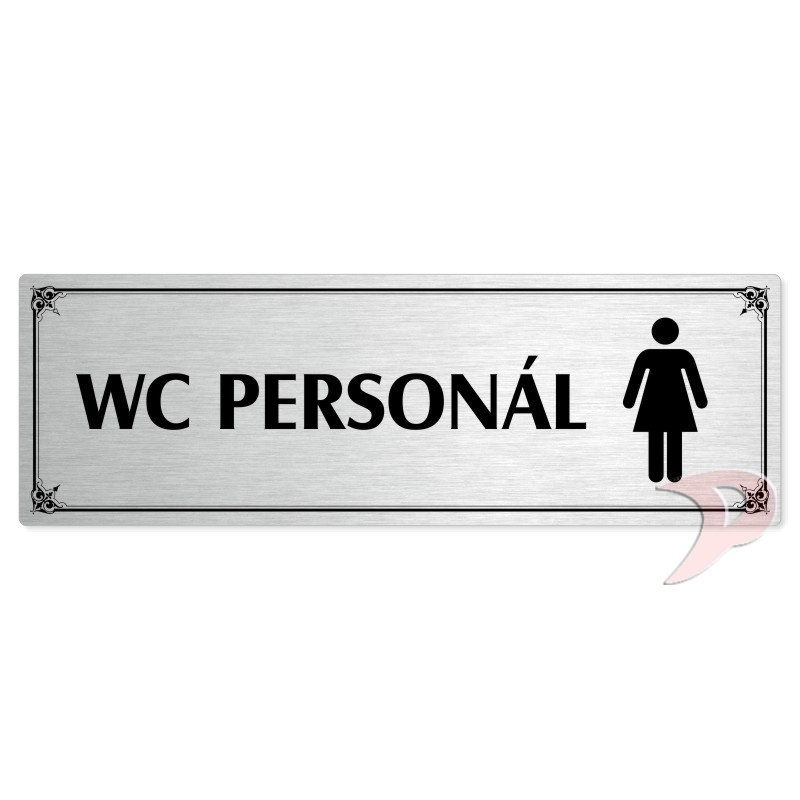 WC personál ženy, 240x79mm, stříbrná popiska s okrasným rámečkem