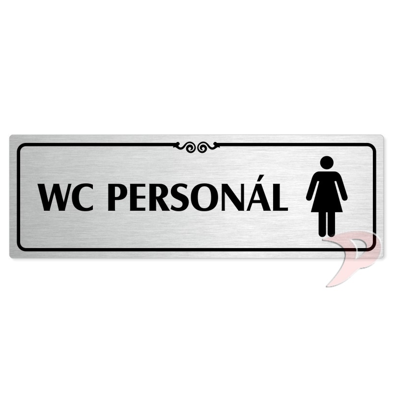 WC personál ženy, 240x79mm, stříbrná popiska s ozdobou uprostřed
