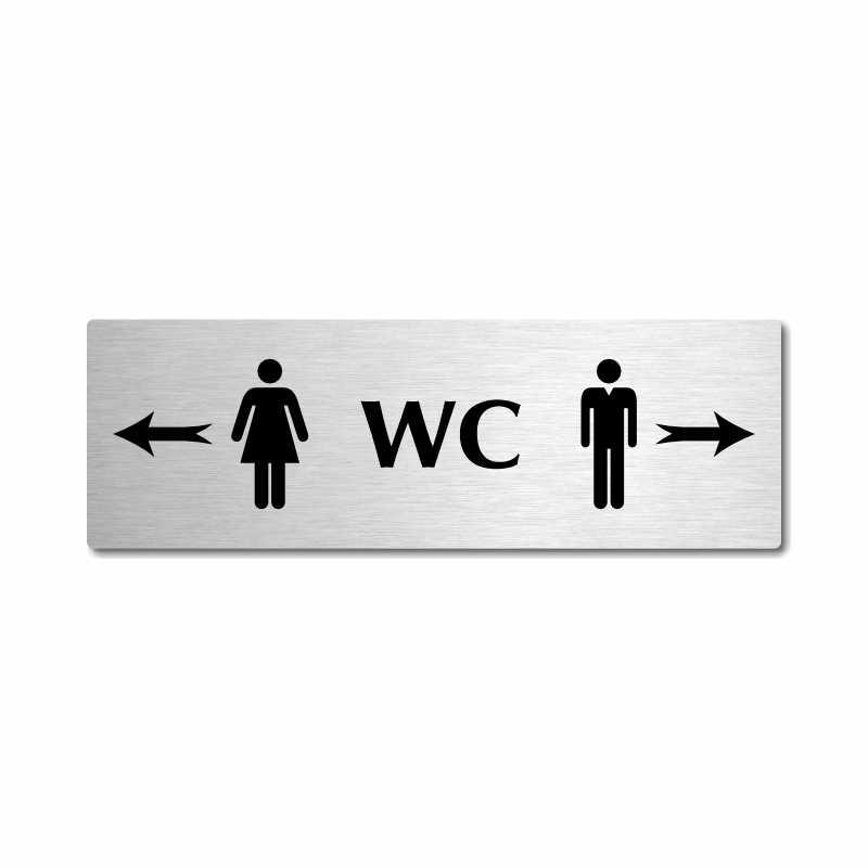 Popiska na dveře “WC společné - rozcestník“ Vyrobeno z broušeného lakovaného hliníku o síle 0,6 mm Rozměr je 200x66mm a 240x79mm Povrch je pololesklý  Obrázek či text je tepelně-chemicky natištěn do materiálu, a nelze ho odstranit. Cedulka je z výroby podlepena oboustrannou  páskou pro snadnou ... celý popis