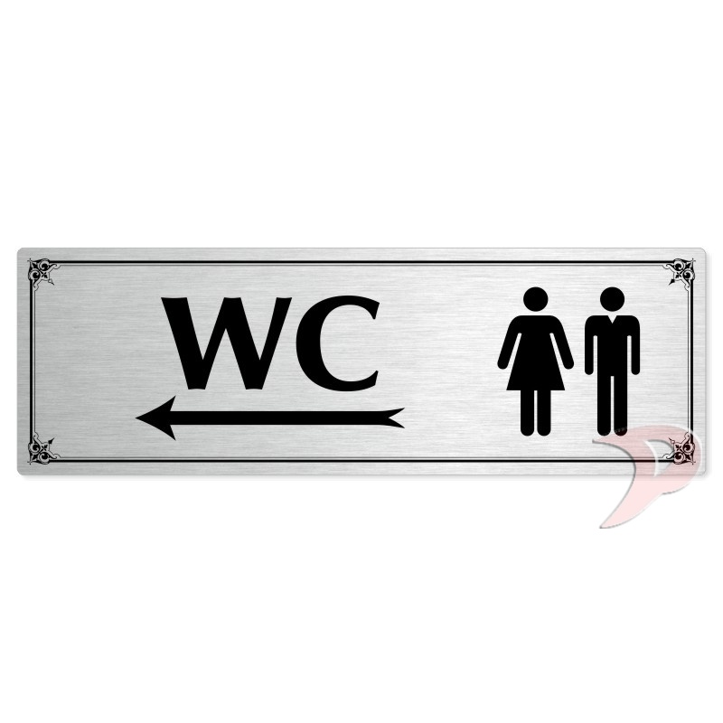 WC společné vlevo, 240x79mm, stříbrná popiska s okrasným rámečkem