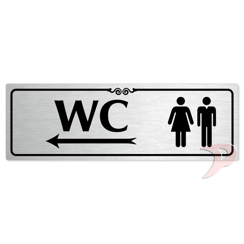 WC společné vlevo, 240x79mm, stříbrná popiska s ozdobou uprostřed