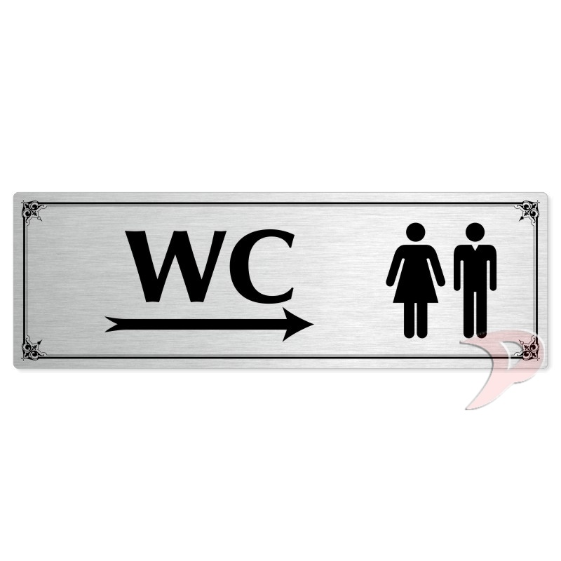WC společné vpravo, 240x79mm, stříbrná popiska s okrasným rámečkem
