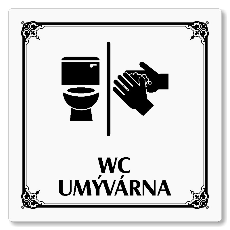 Cedulka na dveře “WC, umývárna“ Vyrobeno z broušeného lakovaného hliníku o síle 0,6 mm Rozměr je 80x80mm, 100x100mm, 118x118mm a 148x148mm Povrch je pololesklý  Obrázek či text je tepelně-chemicky natištěn do materiálu, a nelze ho odstranit. Cedulka je z výroby podlepena oboustrannou  páskou pr... celý popis