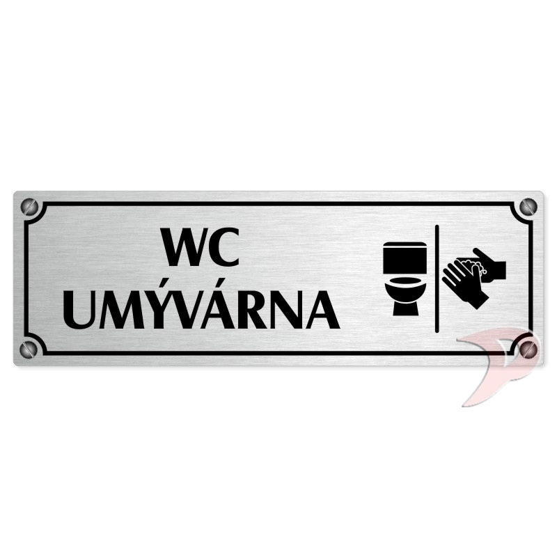 WC umývárna, 200x66mm, stříbrná popiska s imitacemi šroubků