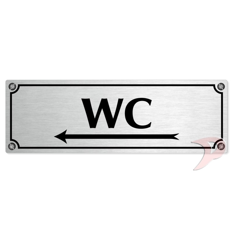 WC vlevo, 200x66mm, stříbrná popiska s imitacemi šroubků