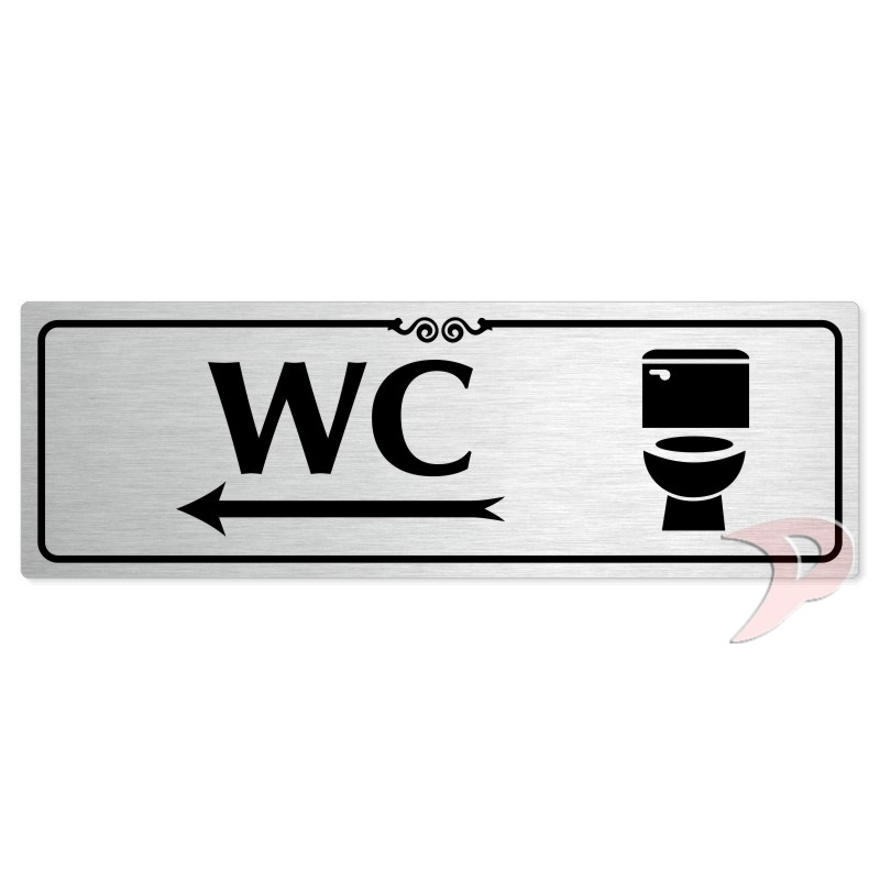 WC vlevo, 200x66mm, stříbrná popiska s ozdobou uprostřed